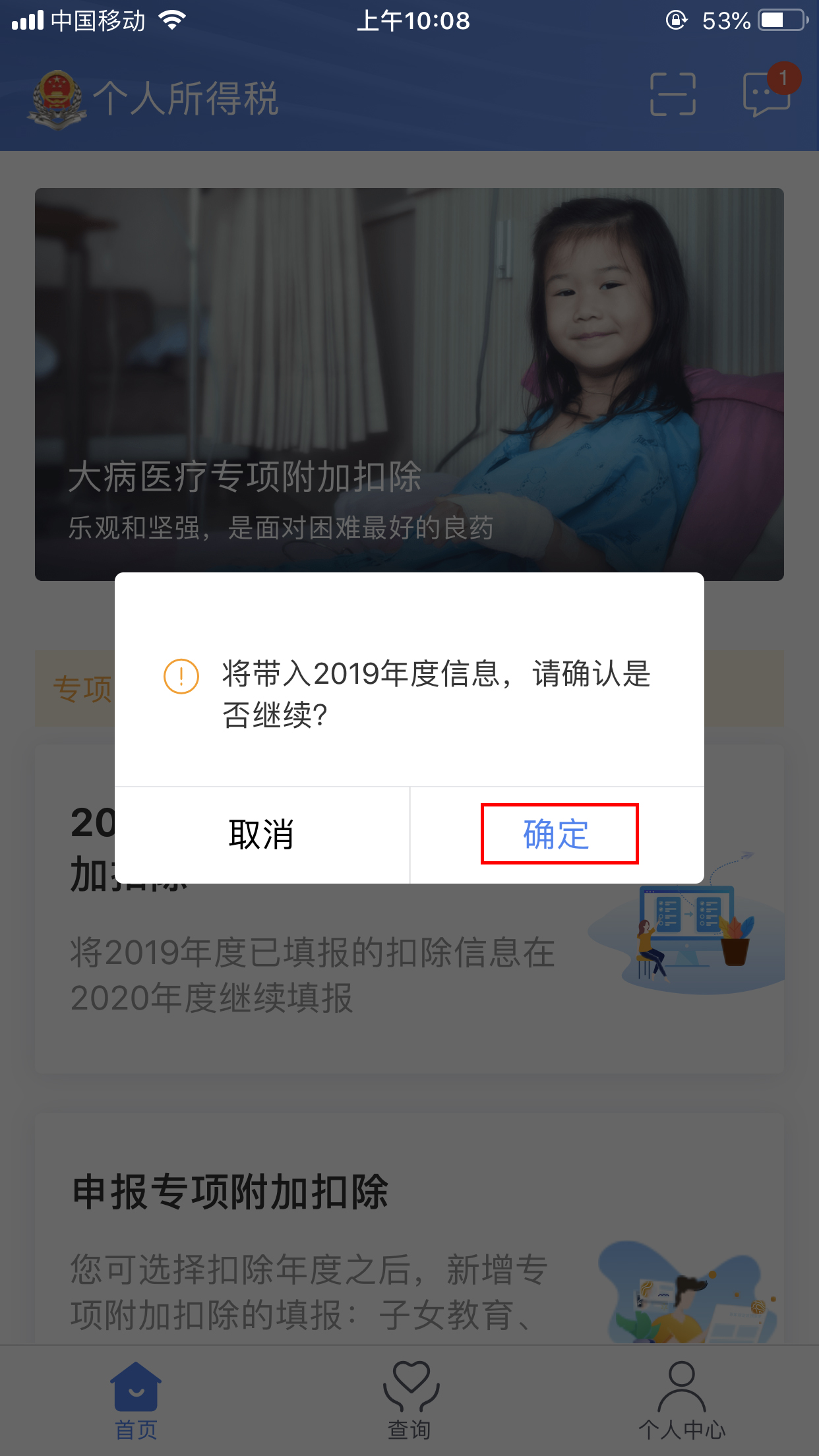 ① 2020年的专项附加扣除信息无变动,只需在2019年基础上确认即可: