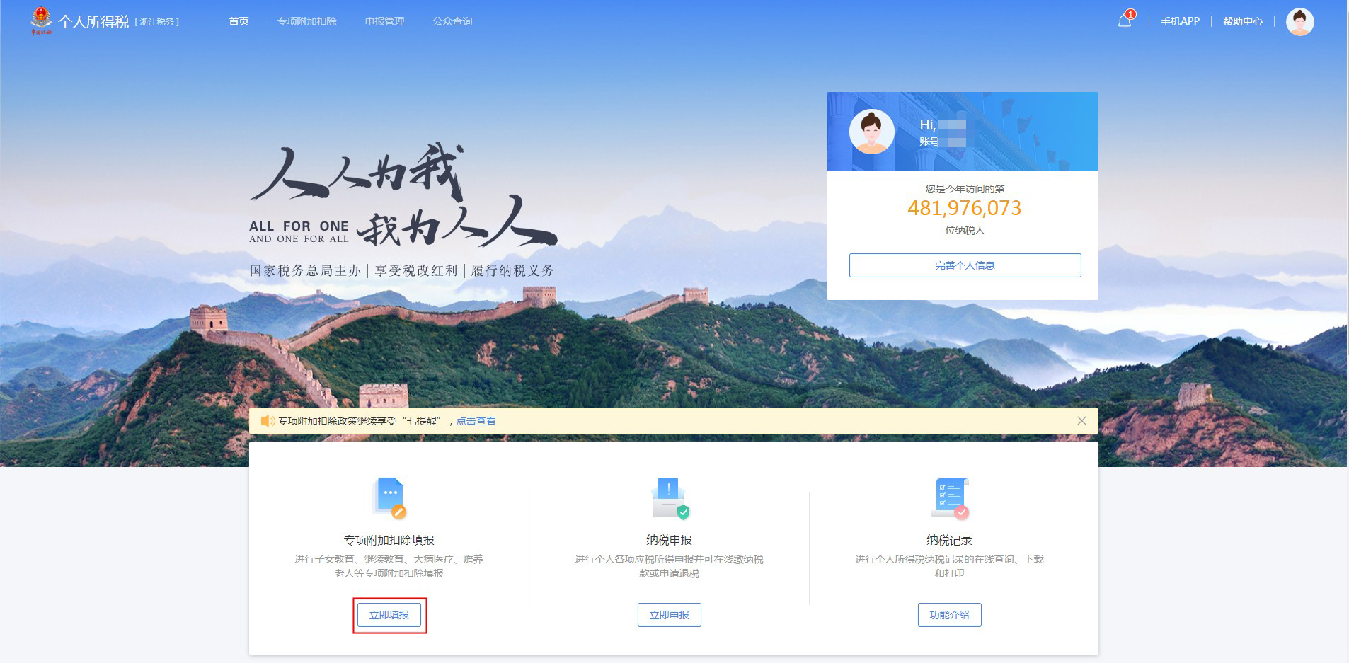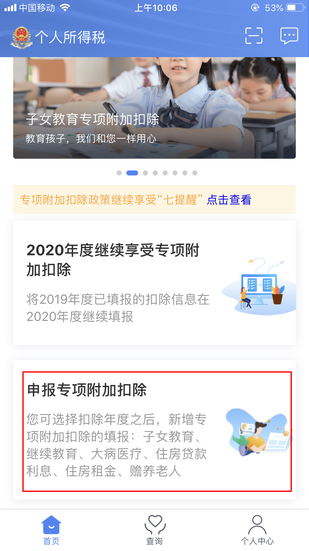 ①点击【申报专项附加扣除】模块
