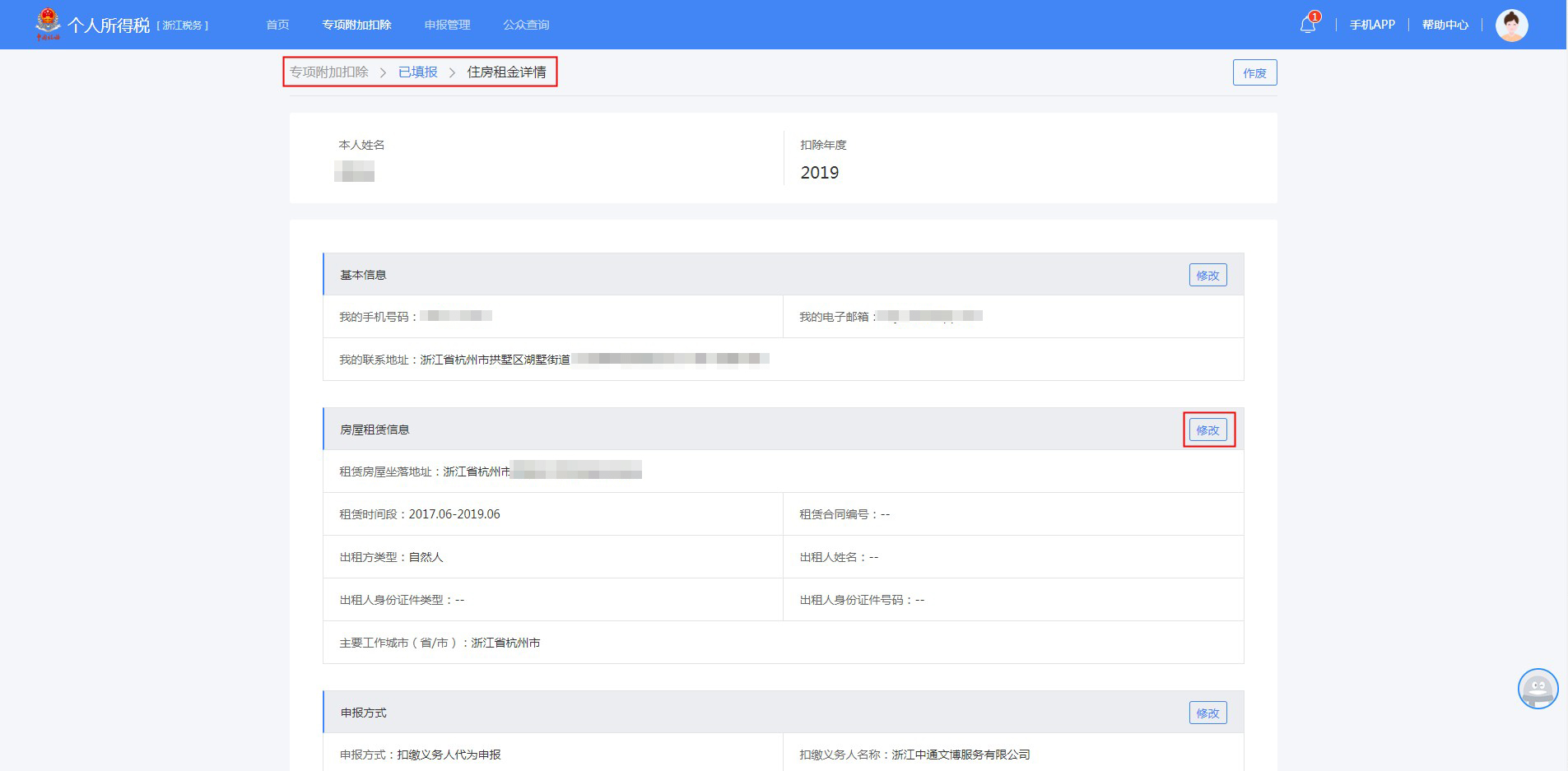 2、2019年已填报过专项附加扣除,但2020年需对已填写信息进行修改。
