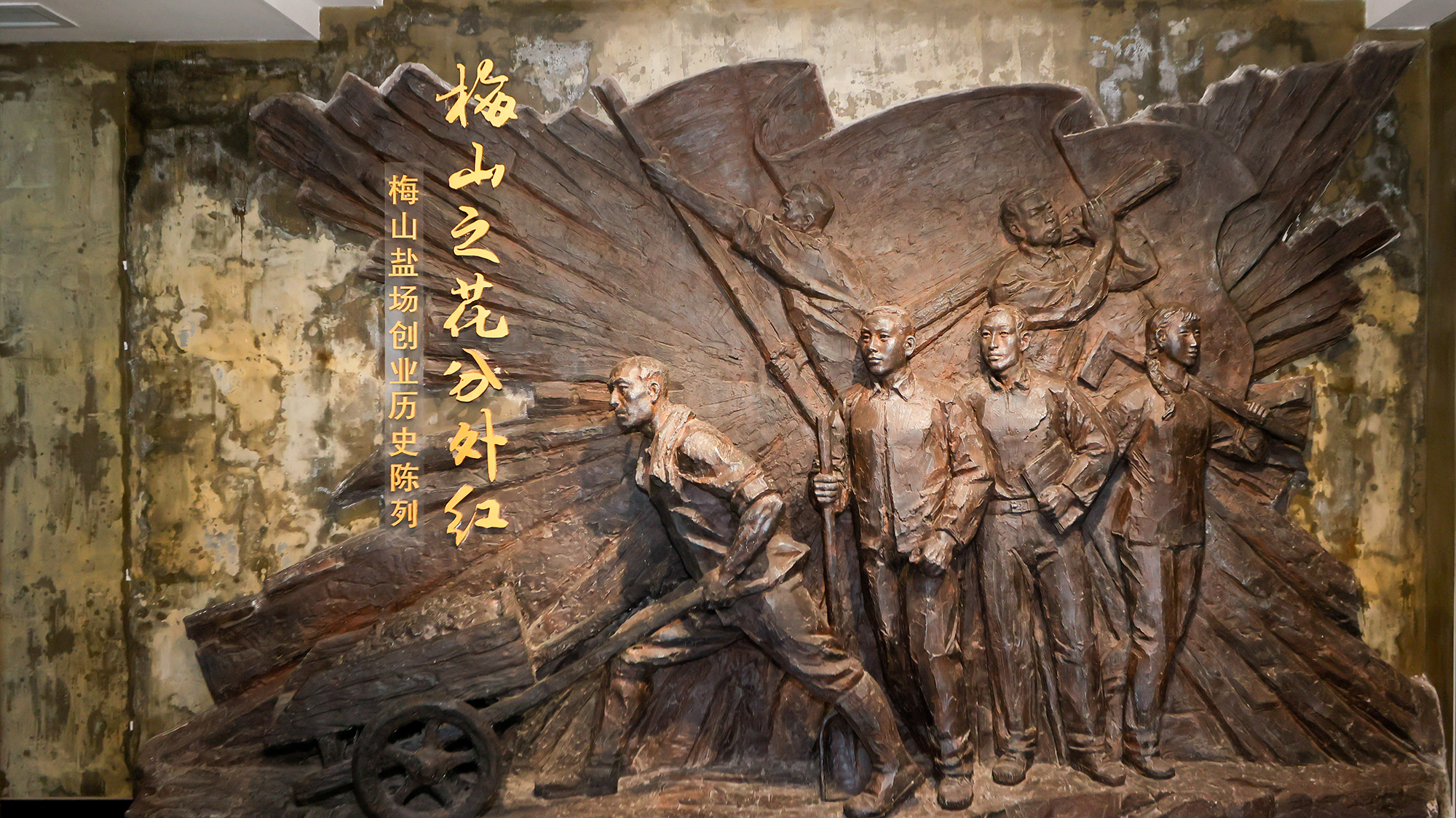 梅山盐场始建于1958年4月,仅用72天时间就完成原定为3年的筑塘任务,1959年全部建成投产。当年被国家轻工业部授予“愿梅山之花开遍全国各地”的锦旗。