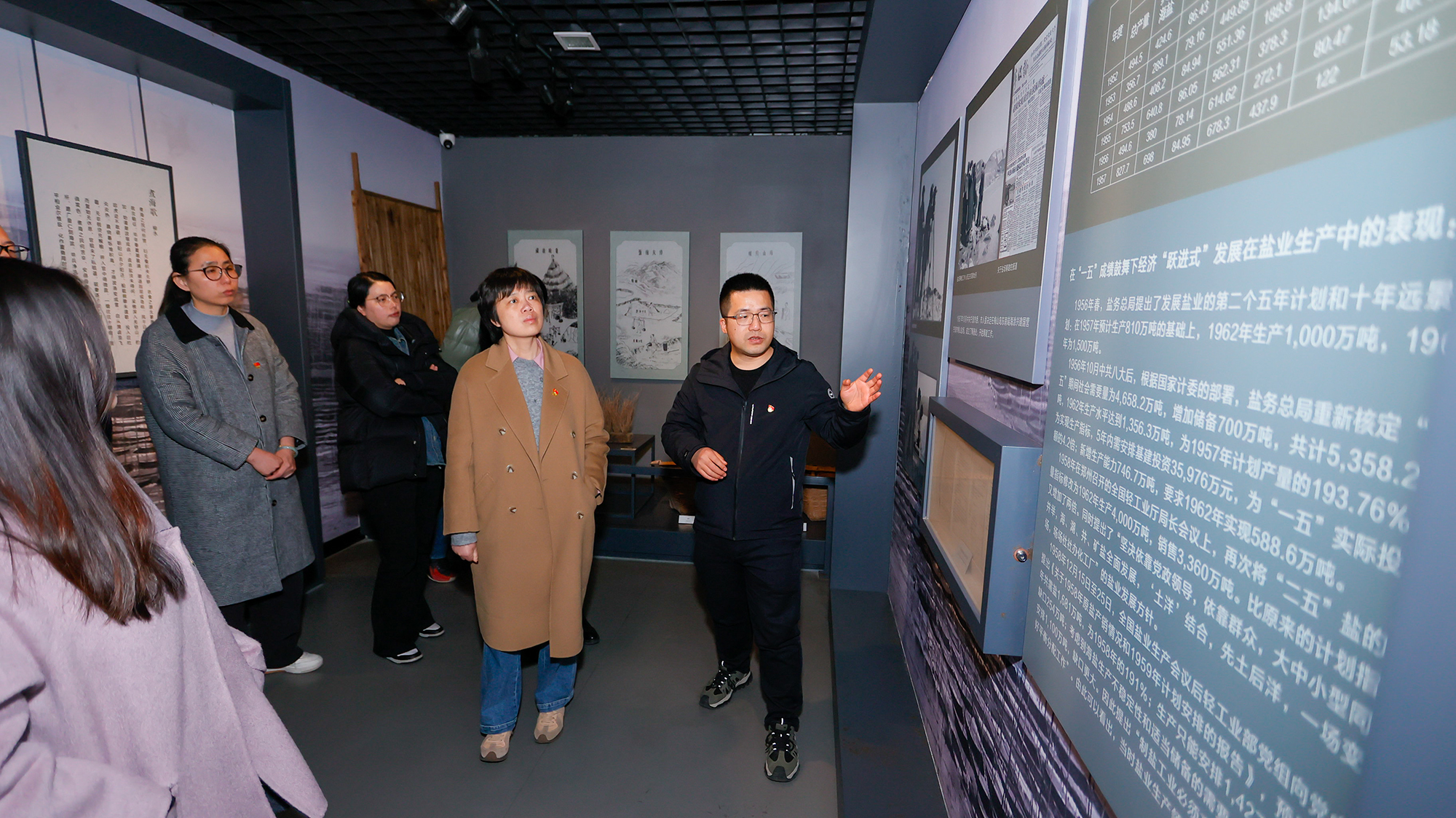 在解说员的带领下,党员同志们走进了梅山盐场的历史。馆内展示的大量珍贵的历史图片与实物史料,复原了当年工作、宿舍场景以及平摊制盐工艺微缩景等,让大家仿佛穿越时光回到那个激情澎湃的年代,感受到梅盐人“吃苦耐劳、艰苦奋斗、勇于创新、永争先进”的精神。
